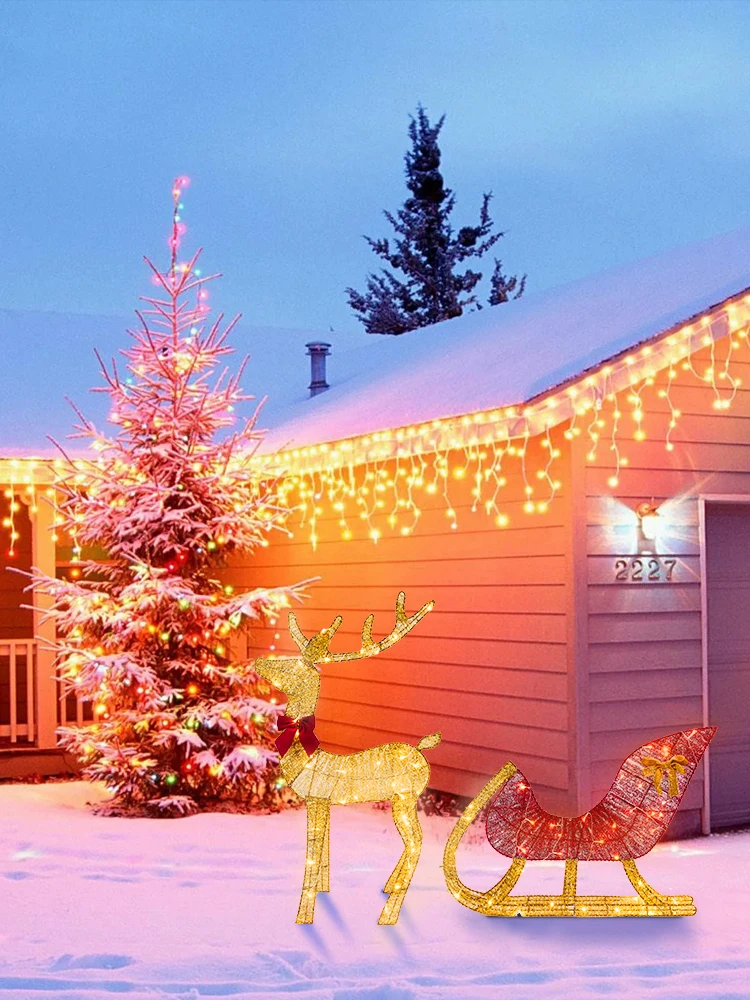 1.Festive Outdoor Display: Bring holiday cheer to your Christmas yard decorations with this lighted reindeer and sleigh decoration set.