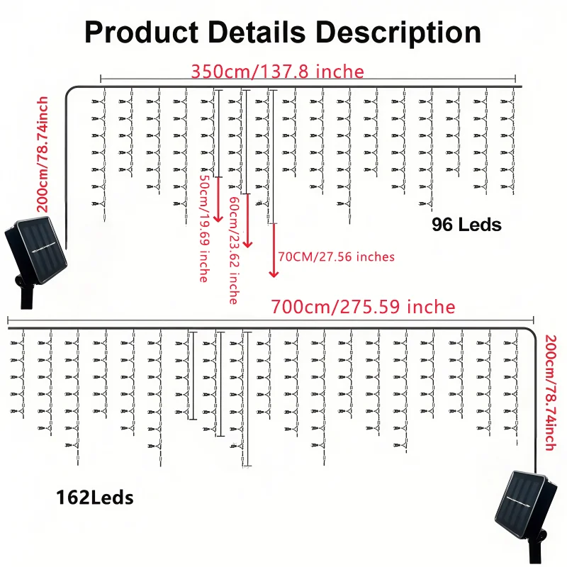 Applicable scenarios: outdoor garden decoration, eaves decoration, street tree decoration, Christmas garden decoration, home curtain decoration