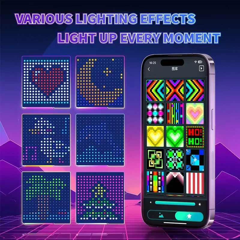 Allowing for higher pixel densities and adding more dimensions to the lighting display. You can use your imagination to draw graphics using different colors, adjust brightness and speed and save them for long term use, this is also an opportunity to show off your own. For example: flag, slogans, cute patterns and etc.(Note: GIF function only applies to a collection, the speed does not support the adjustment)